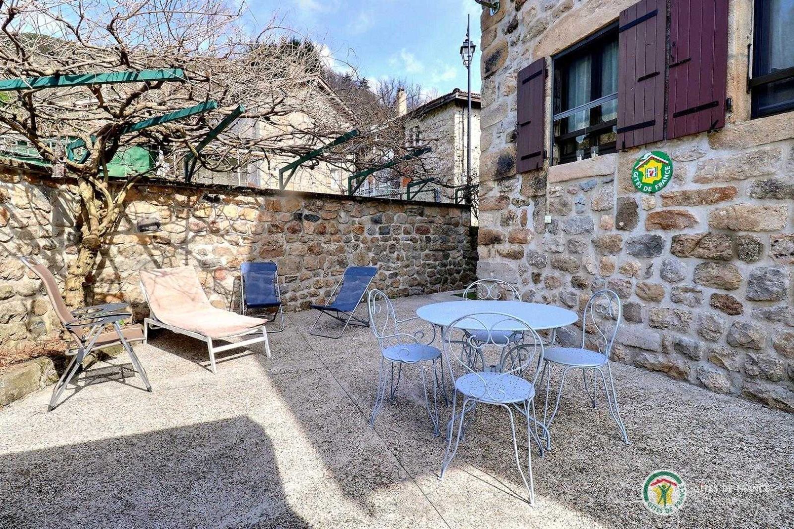 In leafy valley below the Mézenc and Gerbier de Jonc mountains (extinct volcanoes). Comfortable, 2 level gîte adjoining owner's house, 1km from village. Living room/kitchen area, 2 bedrooms (2 single beds) (double bed), small separate room (cot), double sofa bed, bathroom, WC. Electric heating, inset fireplace. TV point. Enclosed courtyard. Large shops 15km.